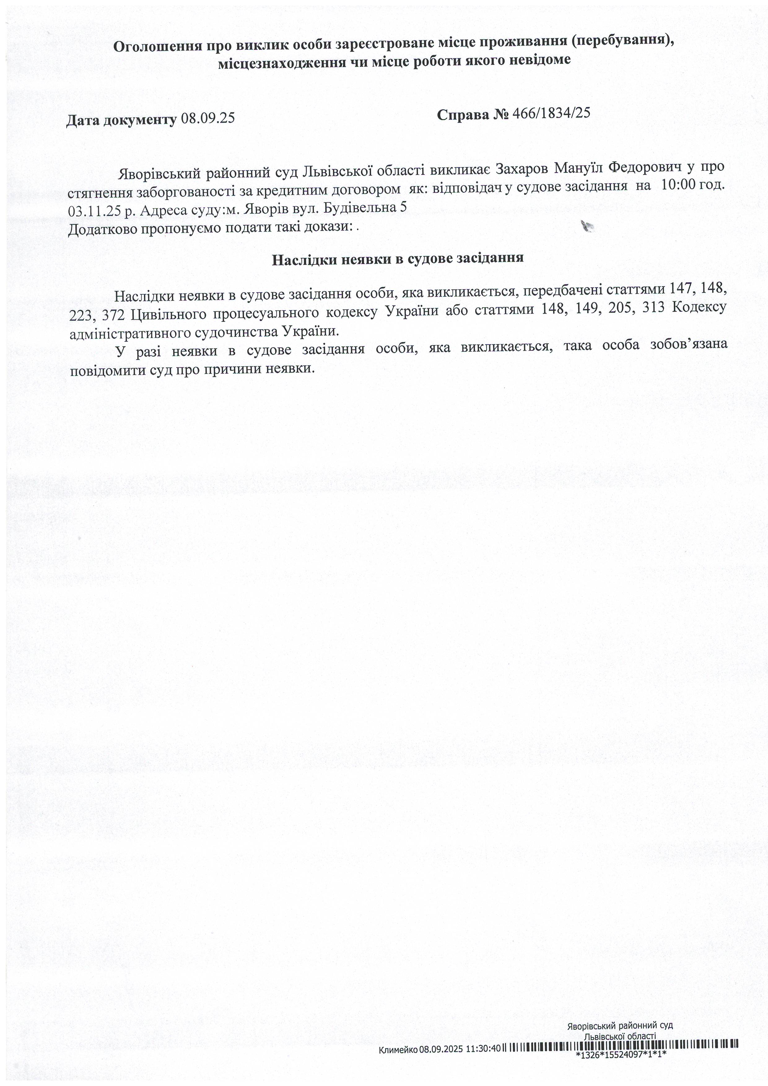 Виклик в якості відповідача Захарова Мануїла Федоровича