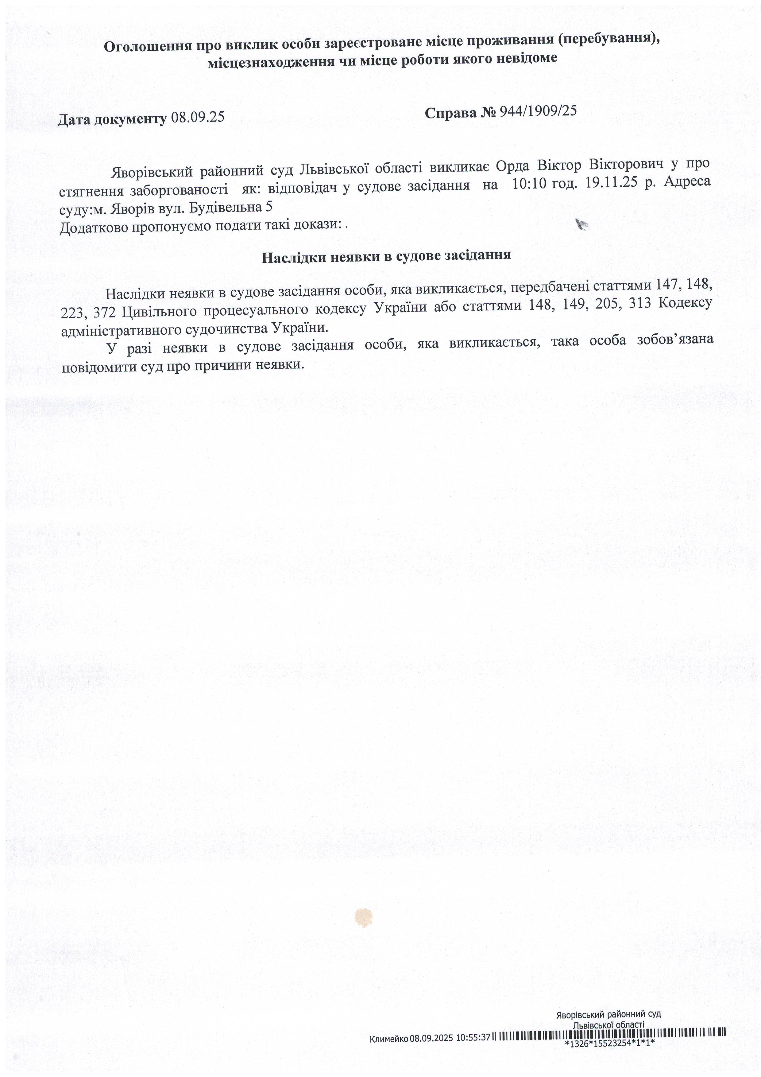 Виклик в якості відповідача Орда Віктора Вікторовича