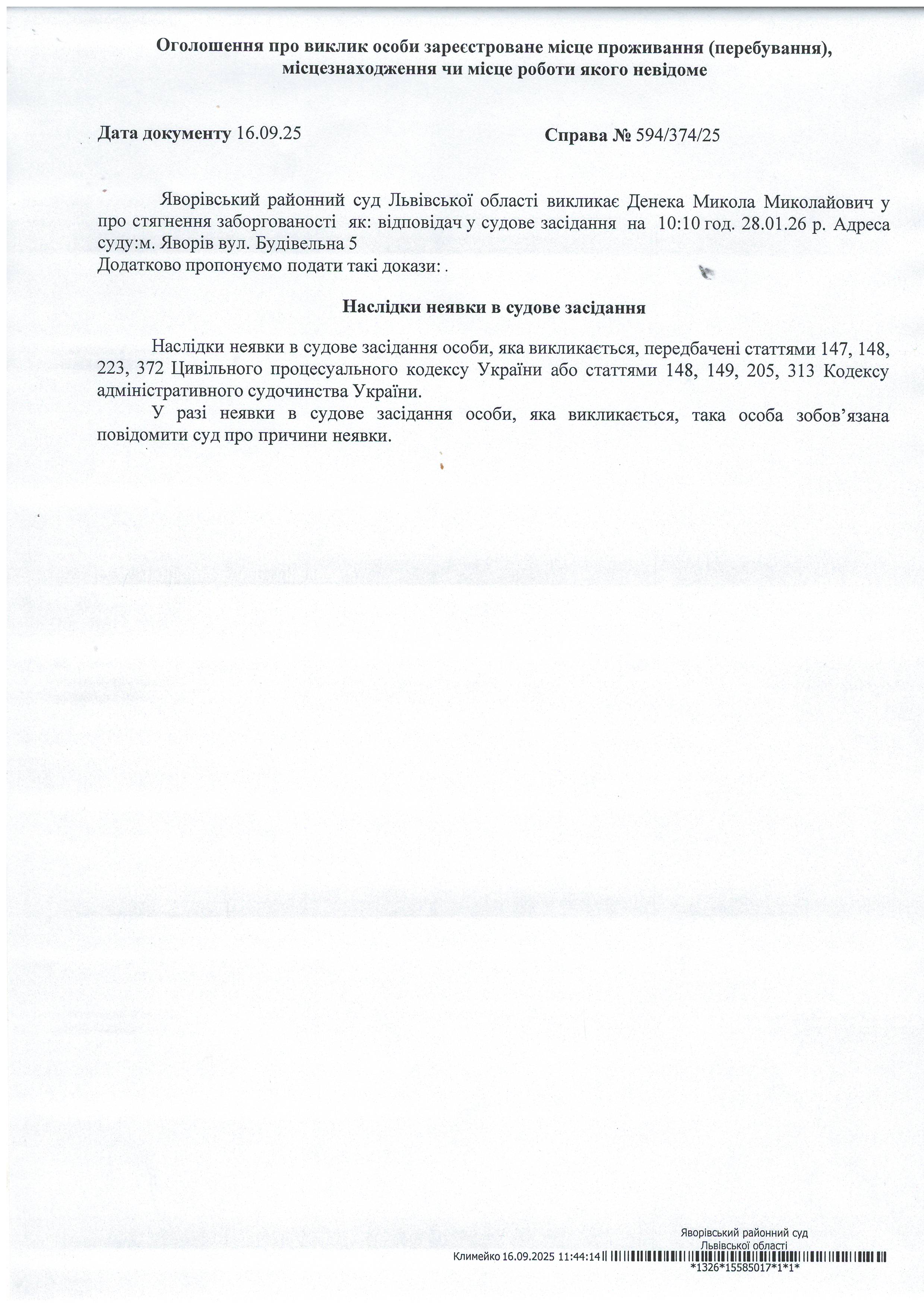 Виклик в якості відповідача Денека Миколи Миколайовича