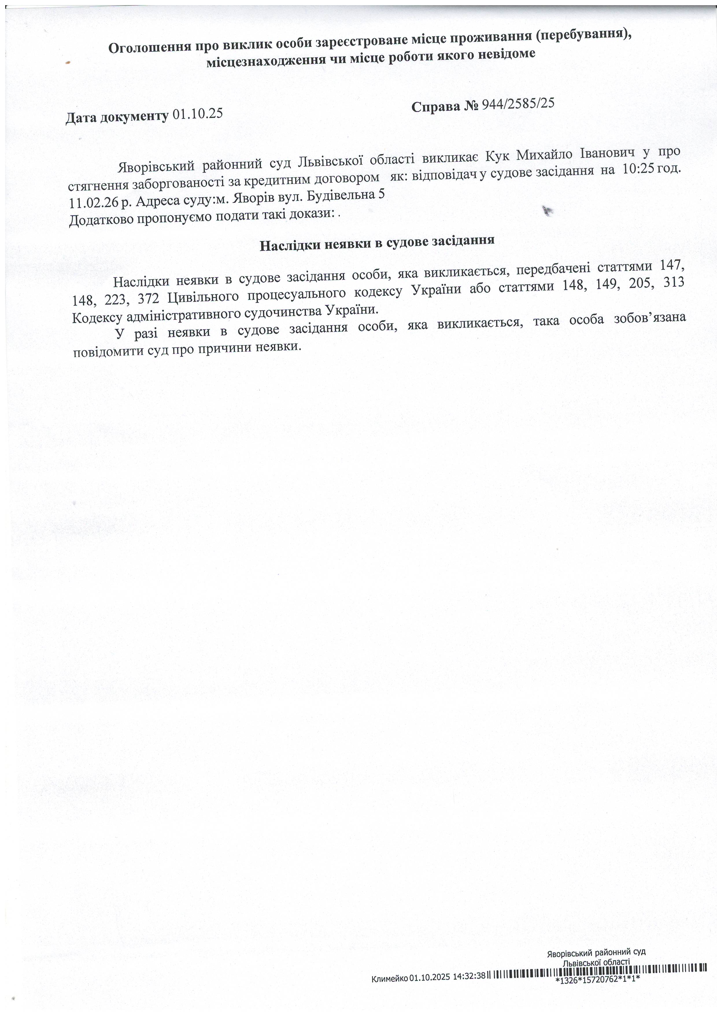 Виклик в якості відповідача Кук Михайла Івановича