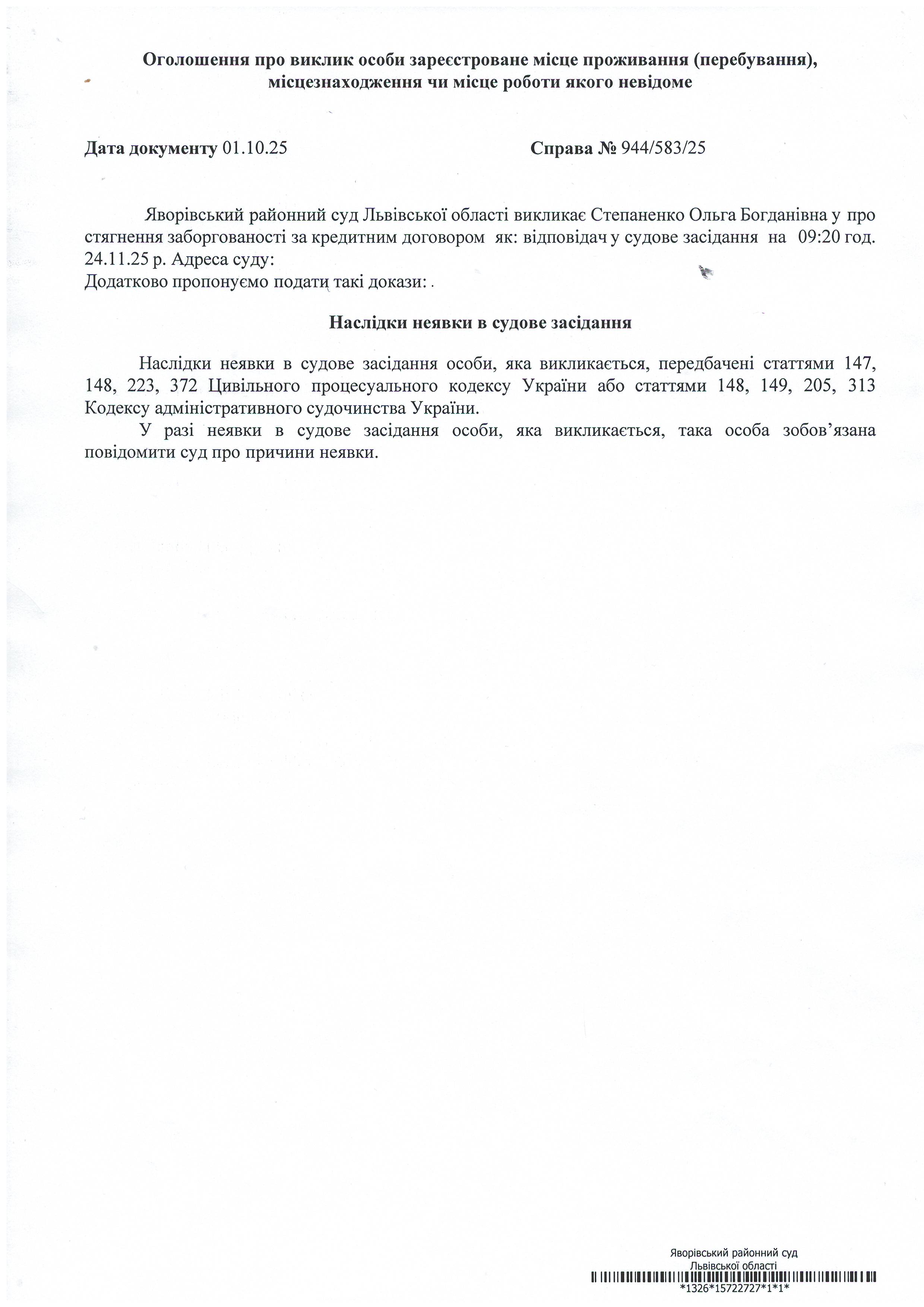 Виклик в якості відповідача Степаненко Ольгу Богданівну