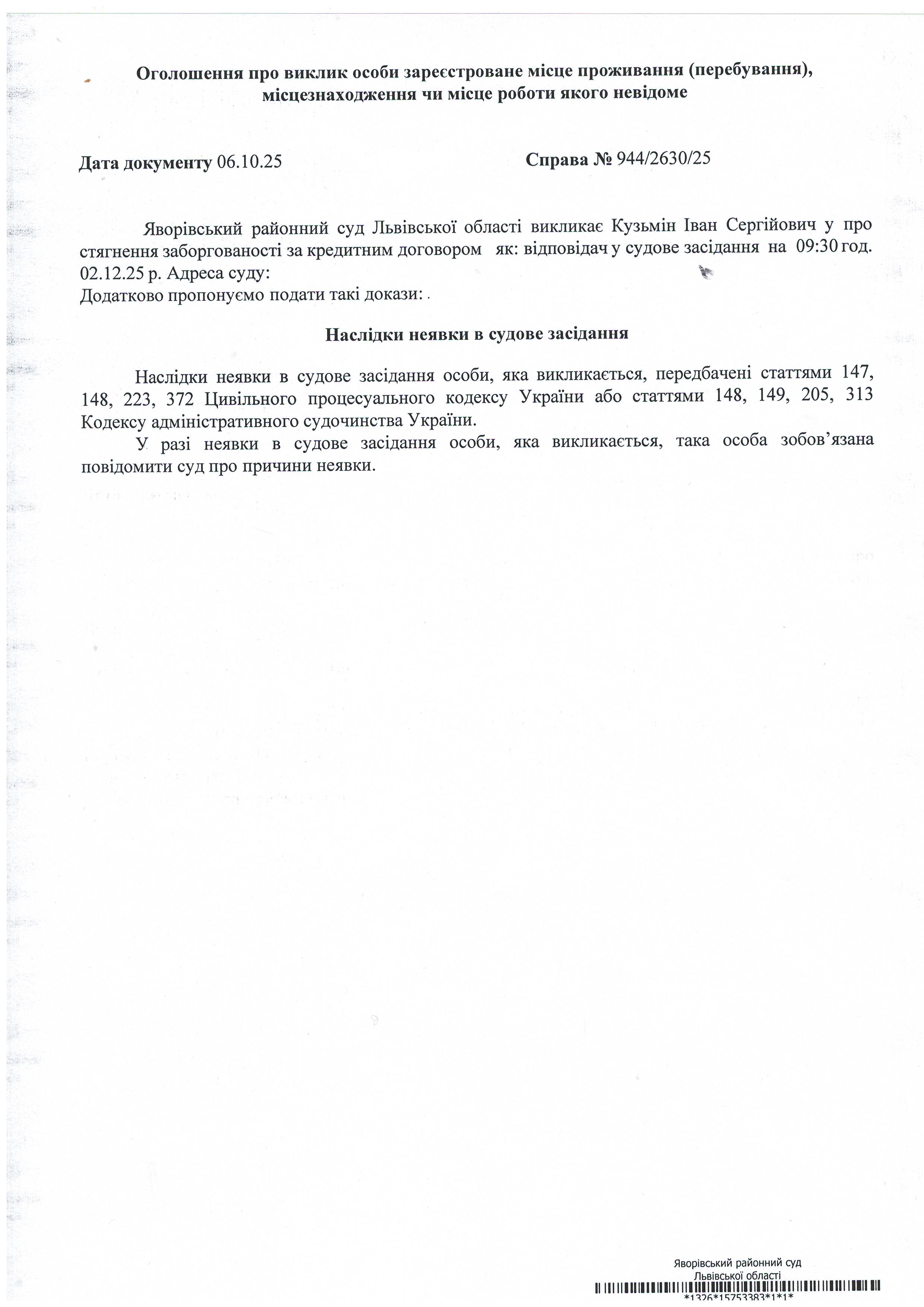 Виклик в якості відповідача Кузьміна Івана Сергійовича