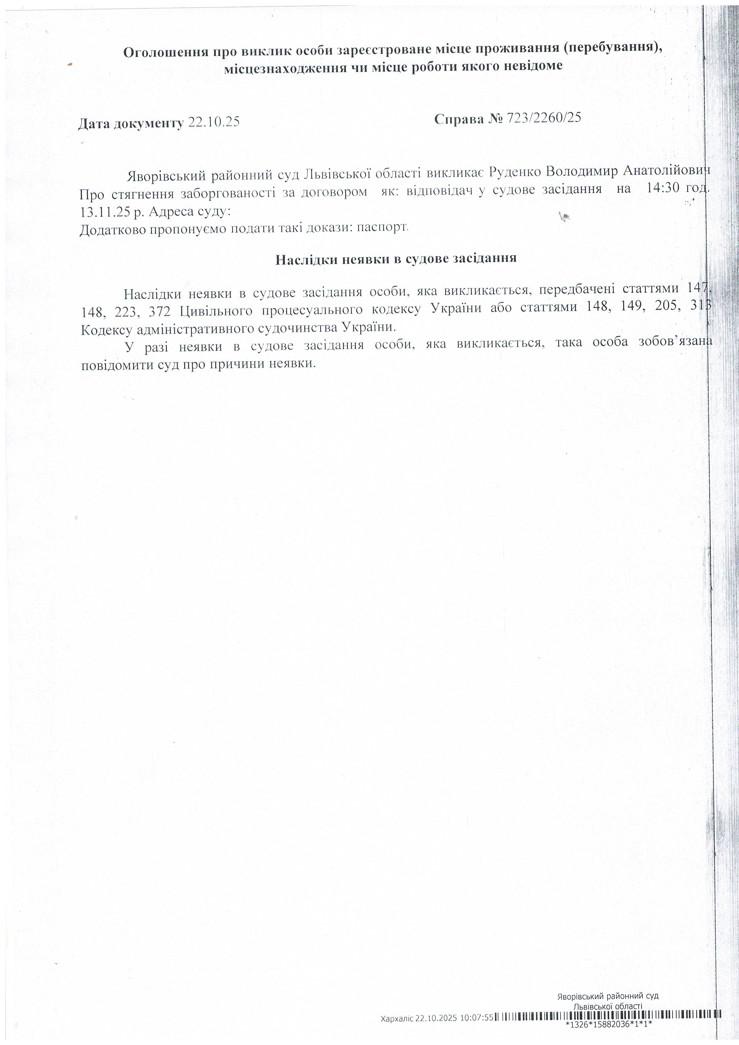 Виклик в якості відповідача Руденко Володимира Анатолійовича