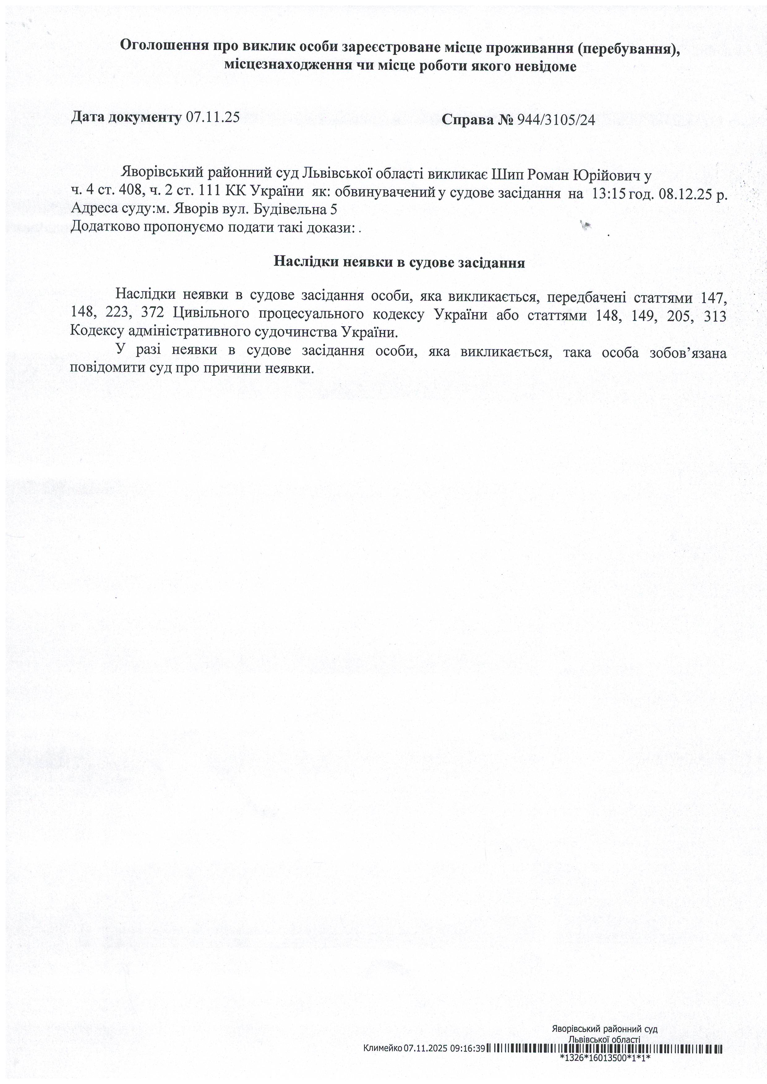 Виклик в якості відповідача Шип Романа Юрійовича