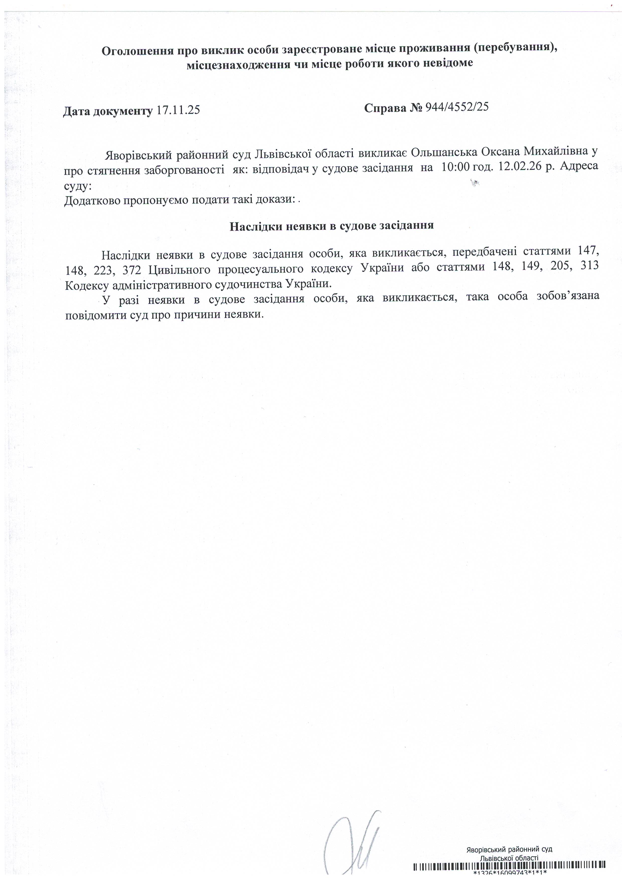 Виклик в якості відповідача Ольшанську Оксану Михайлівну