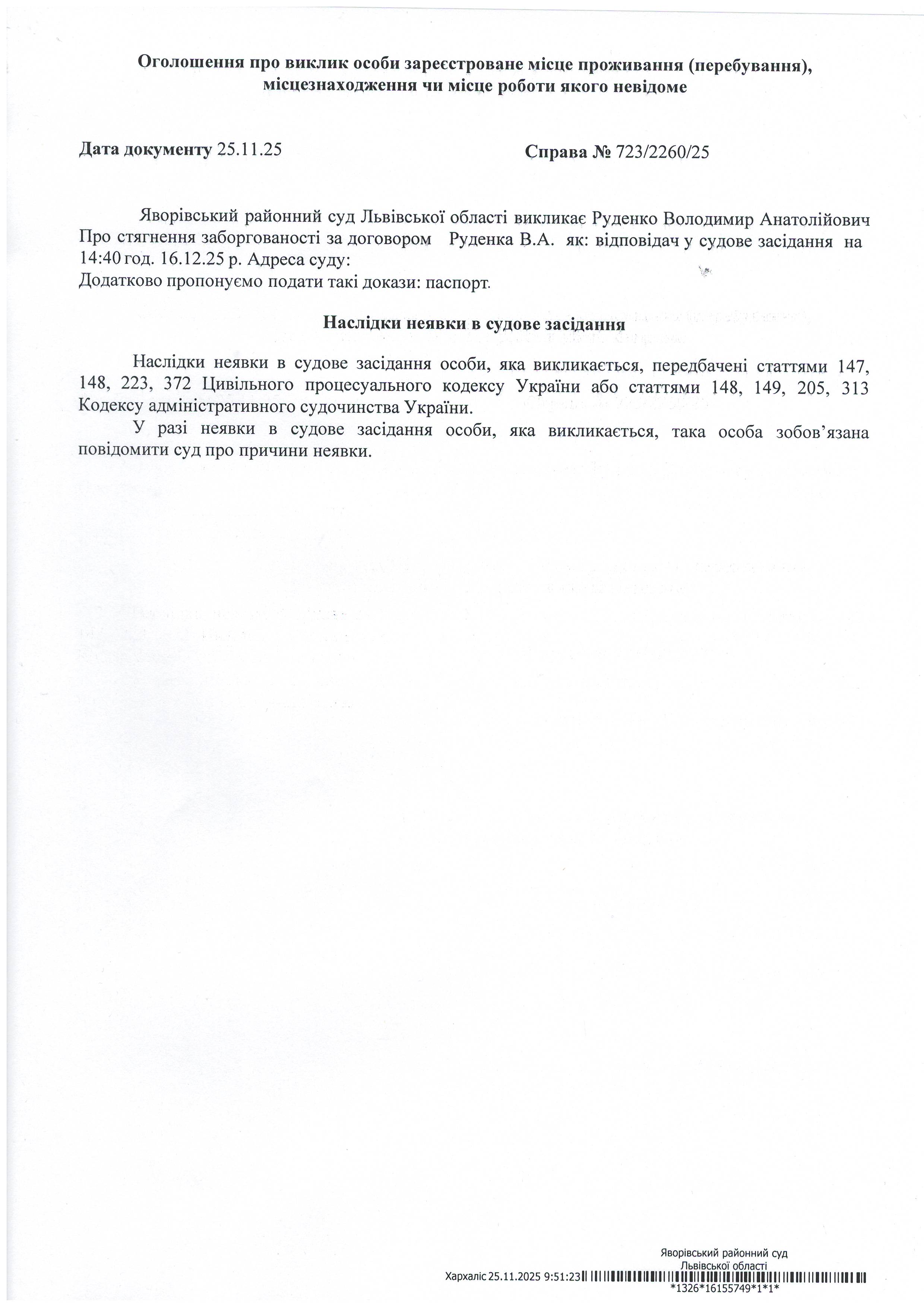 Виклик в якості відповідача Руденко Володимира Анатолійовича