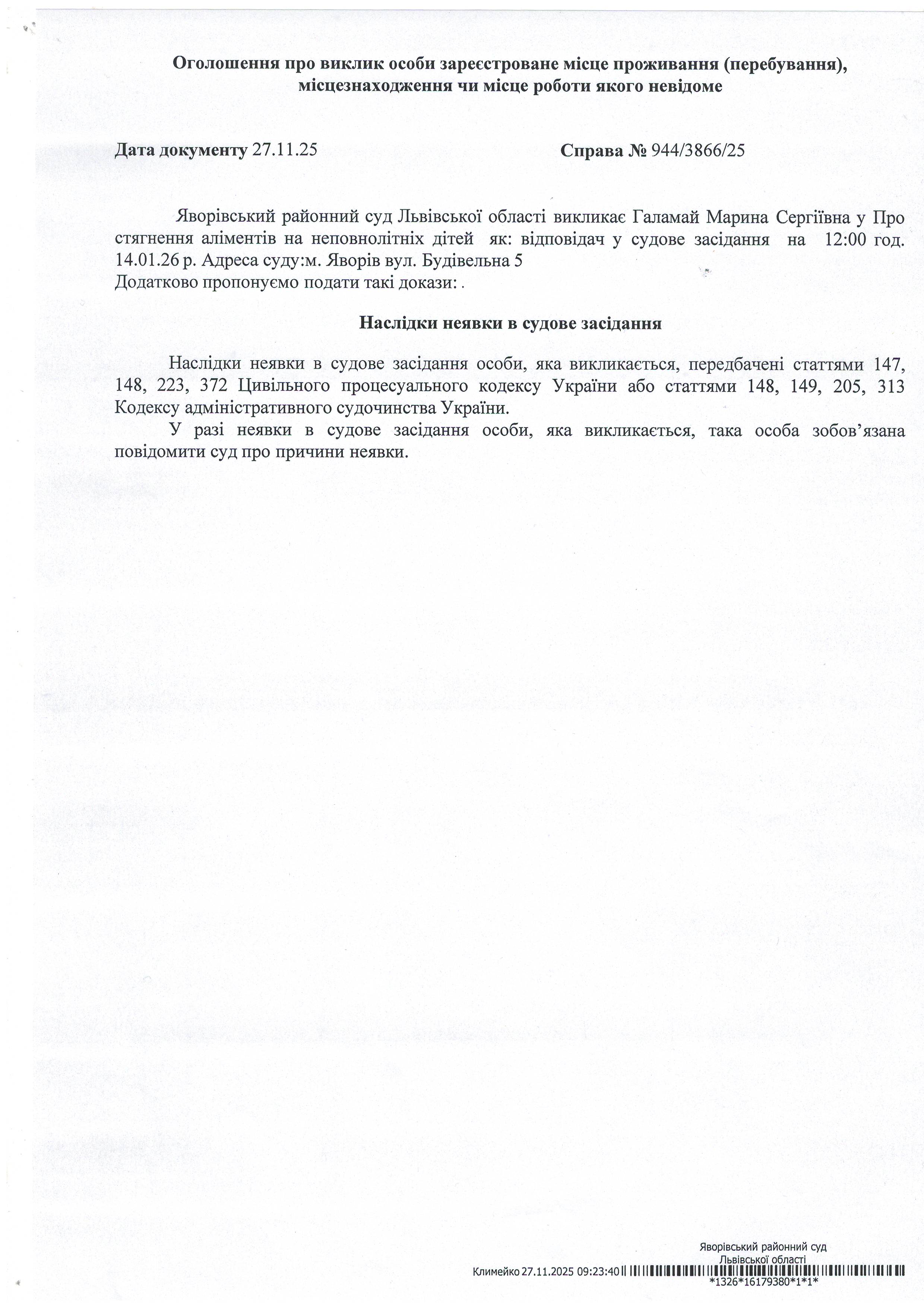 Виклик в якості відповідача Галамай Марини Сергіївни