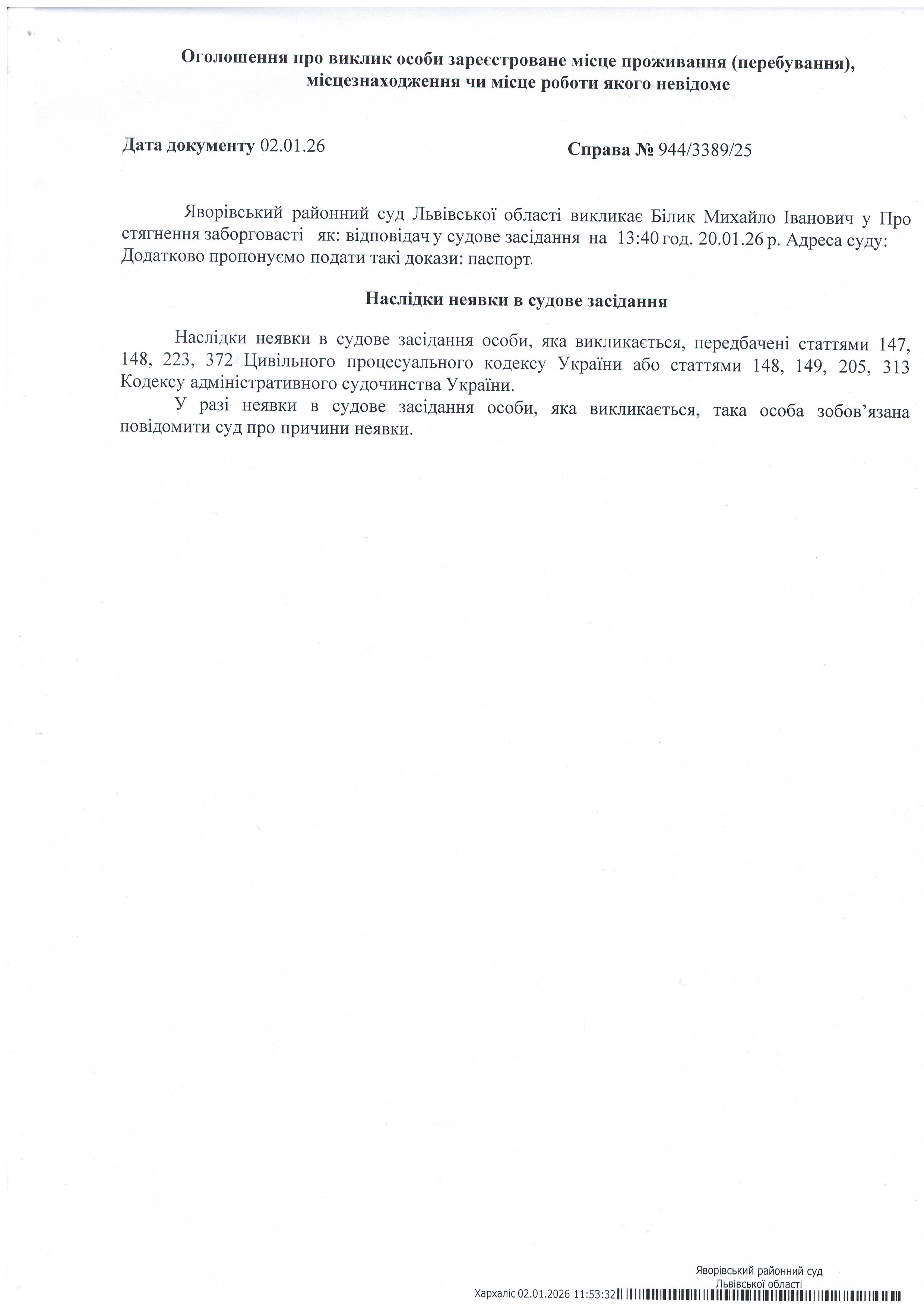 Виклик в якості відповідача Білик Михайла Івановича
