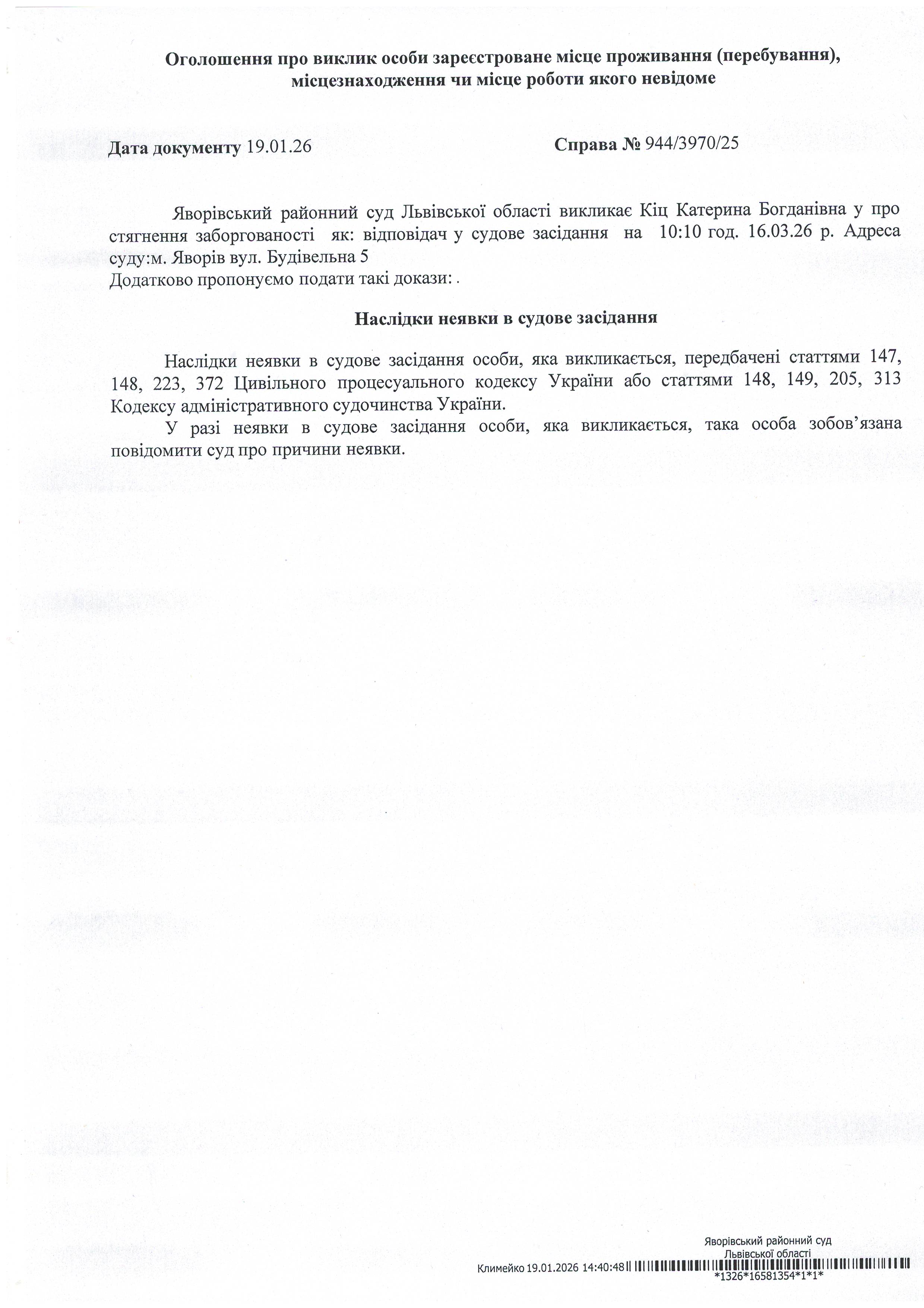 Виклик в якості відповідача Кіц Катерину Богданівну