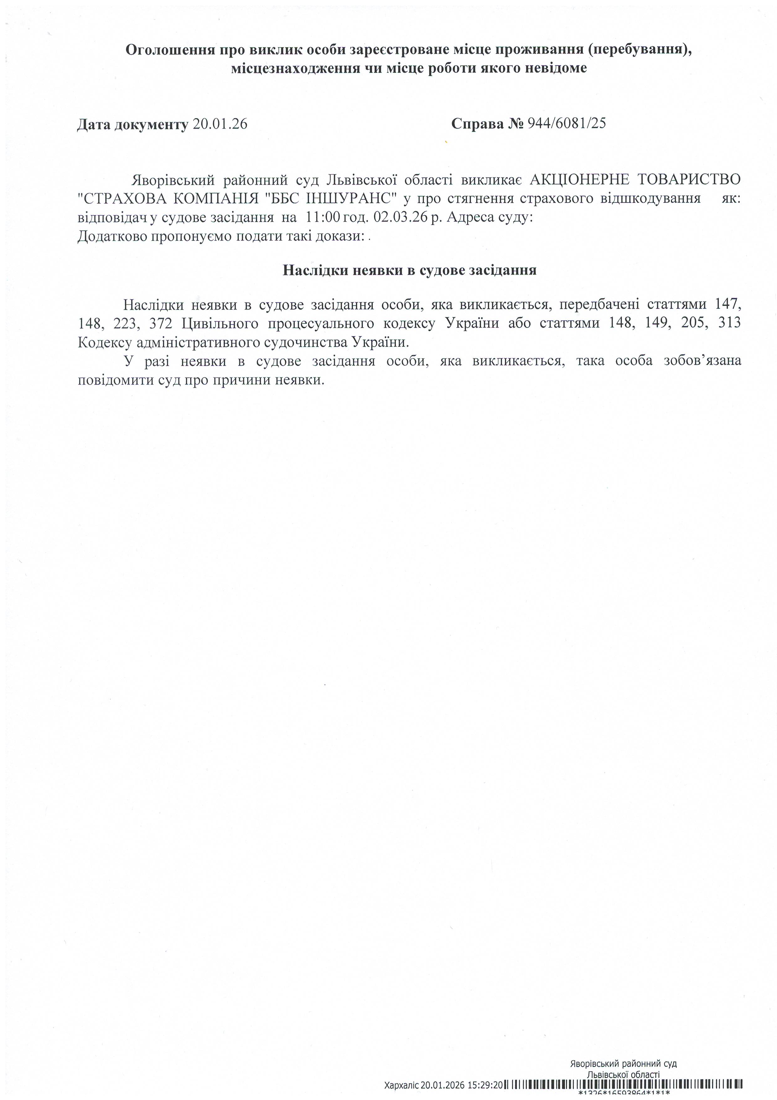 Виклик в якості відповідача АТ "Страхова компанія "ББС ІНШУРАНС"