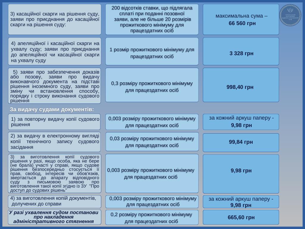 Відповідно до частини 1 статті 4 Закону України «Про судовий збір», судовий збір справляється у відповідному розмірі від прожиткового мінімуму для працездатних осіб, встановленого законом на 1 січня календарного року, в якому відповідна заява або скарга подається до суду, - у відсотковому співвідношенні до ціни позову та у фіксованому розмірі.